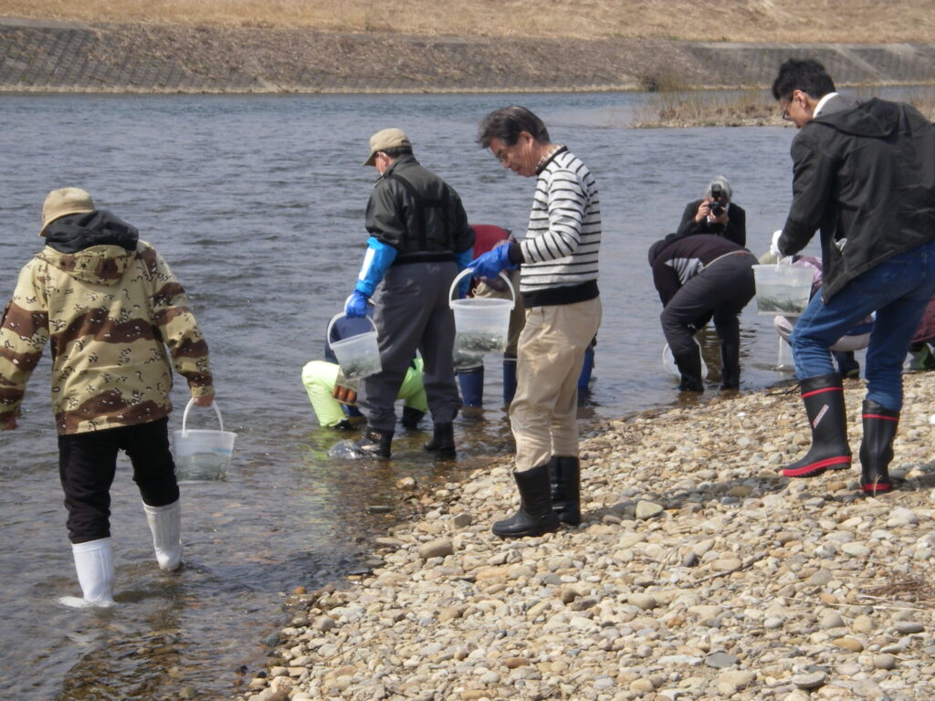 五十嵐川漁協でおこなっております鮭の増殖事業。採卵・受精から育成を経て、2月後半から3月後半にかけて、稚魚放流をおこないました。